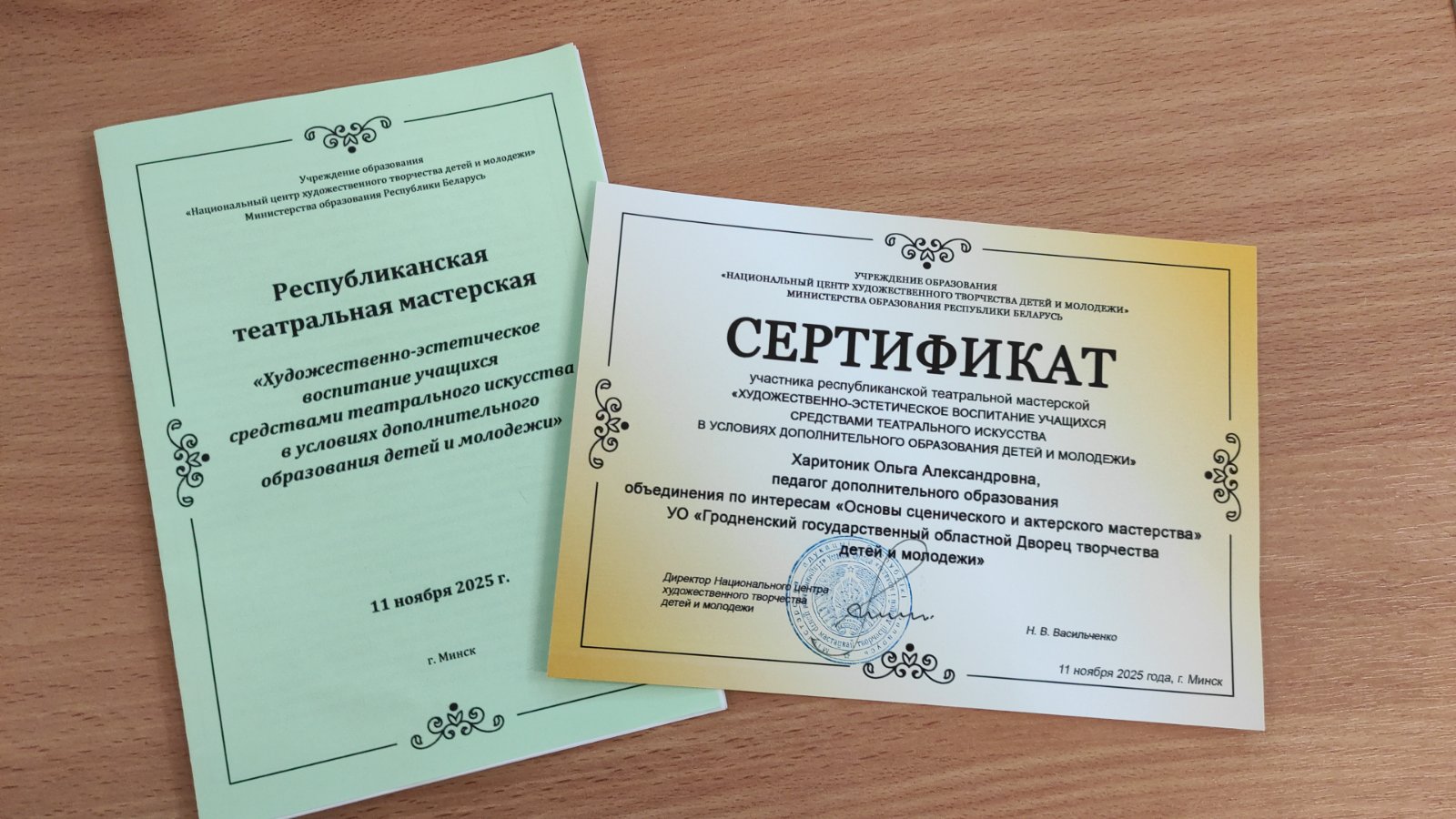 11 ноября 2025 года педагоги Гродненской области приняли участие в республиканской театральной мастерской, организованной Национальным центром художественного творчества детей и молодежи. В рамках программы они посетили авторский мастер-класс «Сценическая речь. Художественное слово как средство духовно-нравственного воспитания личности и творческого мастерства», участвовали в театральной лаборатории «Интеллектуально-творческое развитие детей средствами театра». Участники отметили, что подобные встречи способствуют профессиональному росту, обмену опытом и вдохновляют на новые творческие идеи.