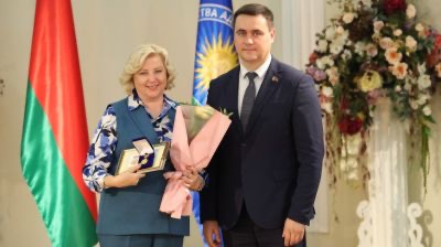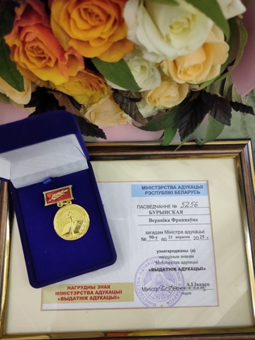 В торжественной обстановке министр образования А.И. Иванец вручил нагрудный знак «Отличник образования» нашей коллеге, педагогу дополнительного образования государственного учреждения образования «Сморгонский районный центр творчества детей и молодёжи» Веронике Францевне Буринской.