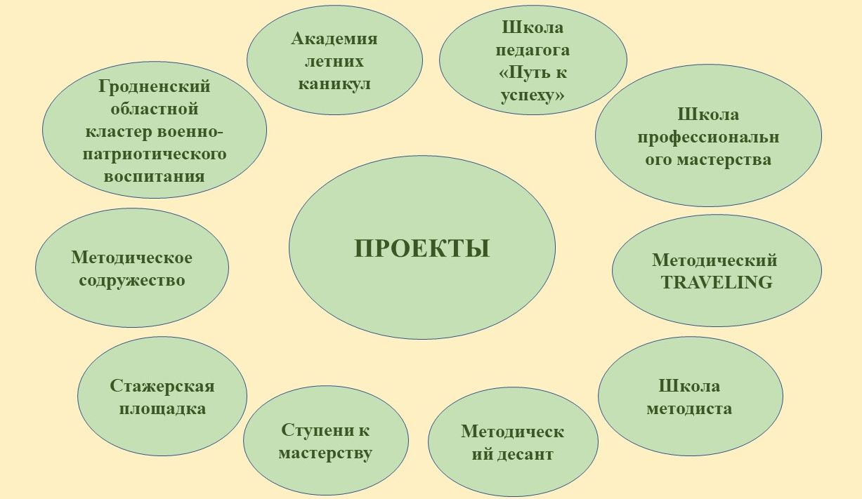 С целью повышения качества образовательного процесса, обобщения, распространения лучших педагогических практик в дополнительном образовании, а также развития мотивации педагогов к повышению профессионального педагогического мастерства, к познанию и педагогическому творчеству в УО «Гродненский государственный областной Дворец творчества детей и молодежи» реализуется ряд проектов: